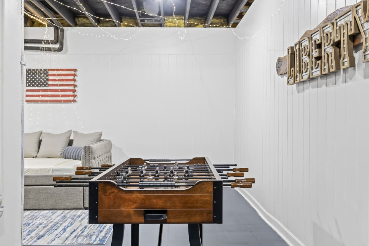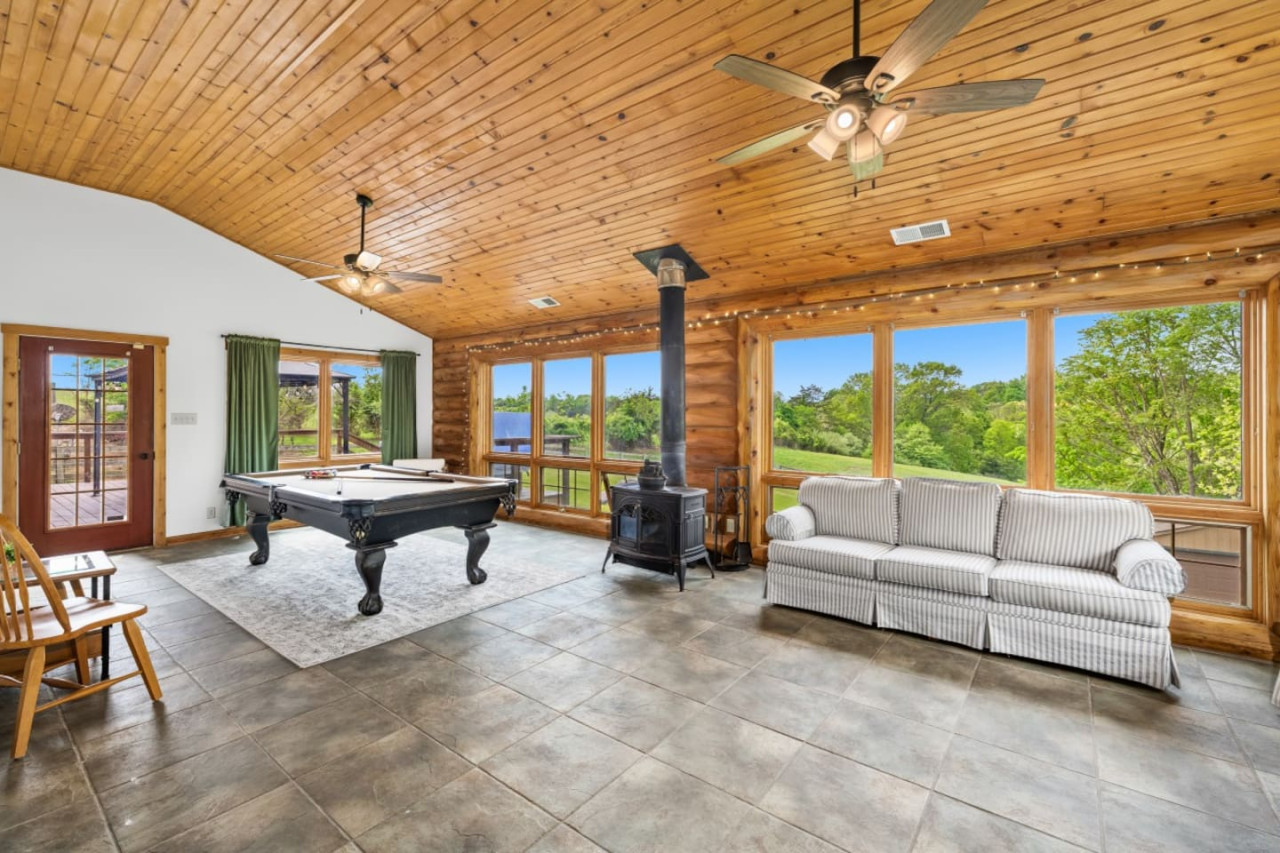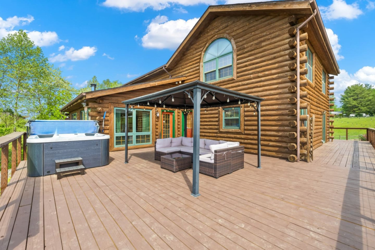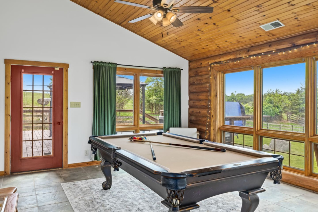Taste the best of country life in the beautiful Shenandoah Valley. Surrounded by award-winning wineries, you are sure to find local flavor that you'll love. While adventure-seekers hike or ride Blue Ridge trails and explore caverns and bends in the river, others will enjoy relaxing in a house that truly is a destination in itself. From arcades and games to billiards and foosball to a hot tub with beautiful country views and great outdoor dining areas, Liberty Lodge has something for everyone. Three Bedrooms | Five Acres | 4,000 Square Feet Fire Pit | Hot Tub | Pool Table | Foosball | Gas Grill | Super Nintendo | Pac-Man Arcade Outdoor Dining Space | Patio Seating | Fenced-in Backyard Gig-Speed Wi-Fi | 65-Inch, 55-inch, and 50-Inch Roku TVs Master Bedroom: Queen Bed + Twin Rollaway | Bedroom 2: Queen Bed + Twin Futon | Bedroom 3: Queen Bed | Loft: Queen-Size Sleeper Sofa | Basement Game Room: Queen Day Bed + Twin Trundle Bed OUTDOOR: Hot tub, fire pit with six Adirondack chairs, 16-foot custom-built live edge black walnut table with Bluetooth speakers, patio seating, front porch with rockers and gliders, fenced-in yard INTERIOR: Pool table, foosball table, sunroom with floor-to-ceiling windows, dining room table with Room for six plus additional seating at the kitchen island, 65-inch, 55-inch, and 50-inch Roku TVs, free Gig-speed Shentel Wi-Fi, Pac-Man arcade with 14 popular games, Super Nintendo with 21 all-time classic games KITCHEN: Fully equipped with all the basics; pots + pans, dishes, glassware, silverware, refrigerator, oven, stove, dishwasher with a third rack, microwave, toaster, blender, Keurig Duo coffee maker for K-cups or drip coffee, spacious island GENERAL: Linens and towels, central air conditioning and heat, washer/dryer, iron, pack n' play, keyless entry PARKING: Driveway space for twelve vehicles Guests will have access to the entire house and grounds, with the exception of one closet that is reserved for the cleaners and one small outbuilding that is used by the landscape crew Taste the best of country life in the beautiful Shenandoah Valley. Surrounded by award-winning wineries, you are sure to find local flavor that you'll love. Adventure-seekers may hike or ride Blue Ridge trails and explore caverns and bends in the river, while others enjoy relaxing in a house that truly is a destination in itself. From arcades and games to billiards and foosball to a hot tub with beautiful country views and great outdoor dining areas, Liberty Lodge has something for everyone. Three Bedrooms | Loft | 2.5 Bathrooms | Five Acres | 4,000 Square Feet Fire Pit | Hot Tub | Pool Table | Foosball | Gas Grill | Super Nintendo | Pac-Man Arcade Outdoor Dining Space | Patio Seating | Fenced-in Backyard Gig-Speed Wi-Fi | 65-Inch, 55-inch, and 50-Inch Roku TVs Master Bedroom: Queen Bed + Twin Rollaway | Bedroom 2: Queen Bed + Twin Futon | Bedroom 3: Queen Bed | Loft: Queen-Size Sleeper Sofa | Basement Game Room: Queen Day Bed + Twin Trundle Bed OUTDOOR: Hot tub, fire pit with six Adirondack chairs, 16-foot custom-built live edge black walnut table with Bluetooth speakers, patio seating, front porch with rockers and gliders, fenced-in yard INTERIOR: Pool table, foosball table, sunroom with floor-to-ceiling windows, dining room table with Room for six plus additional seating at the kitchen island, 65-inch, 55-inch, and 50-inch Roku TVs, free Gig-speed Shentel Wi-Fi, Pac-Man arcade with 14 popular games, Super Nintendo with 21 all-time classic games KITCHEN: Fully equipped with all the basics; pots + pans, dishes, glassware, silverware, refrigerator, oven, stove, dishwasher with a third rack, microwave, toaster, blender, Keurig Duo coffee maker for K-cups or drip coffee, spacious island GENERAL: Linens and towels, central air conditioning and heat, washer/dryer, iron, pack n' play, keyless entry PARKING: Driveway space for twelve vehicles ______________________________________________________________________________ The cabin is a convenient base from which to explore the following towns: - Edinburg (three minutes) - Mount Jackson (ten minutes) - Woodstock (ten minutes) - New Market (15 minutes) - Strasburg (25 minutes) - Basye (25 minutes) - Harrisonburg (30 minutes) - Luray (35 minutes) Some of the most popular local restaurants are as follows: - Beans BBQ (four minutes) - Edinburg Mill Restaurant (four minutes) - Swover Creek Farm Brewery in Edinburg (eight minutes) - Woodstock Brewhouse in Woodstock (12 minutes) - The Woodstock Cafe in Woodstock (12 minutes) - Jalisco’s in New Market (15 minutes) - The Burn Barrel in Basye (25 minutes) - The Chop House in Harrisonburg (30 minutes) Some excellent local wineries: - Shenandoah Vineyard near Edinburg (five minutes) - Wolf Gap Vineyard and Winery near Edinburg (five minutes) - The Winery at Kindred Pointe near Conicville (ten minutes) - Cave Ridge Vineyard near Mount Jackson (ten minutes) - Muse Vineyard in Woodstock (12 minutes) - Third Hill Winery near Quicksburg (15 minutes) - North Mountain Vineyard and Winery near Maurertown (20 minutes) - Star in the Valley Estate Winery near Star Tannery (25 minutes) Breweries, cideries, and distilleries near the cabin: - Swover Creek Farm and Brewery near Edinburg (eight minutes) - Life is Hard Cider near Mount Jackson (nine minutes) - Woodstock Brewhouse in Woodstock (12 minutes) - Ridge Runner Taphouse near Woodstock (15 minutes) - Filibuster Distillery in Maurertown (18 minutes) - Box Office Brewery in Strasburg (25 minutes) - Brothers Craft Brewing in Harrisonburg (30 minutes) Things to do around the area include: - Slip a kayak, canoe, or innertube in the water at the Chapmans Landing public boat launch in Edinburg (eight minutes) - Hikes in the George Washington National Forest (closest hiking is about ten minutes away) - ATV Riding at Edinburg Gap (ten minutes) - Hike the trails at Seven Bends State Park or angle for smallmouth and largemouth bass (12 minutes) - Hiking at Wolf Gap Recreation Area (