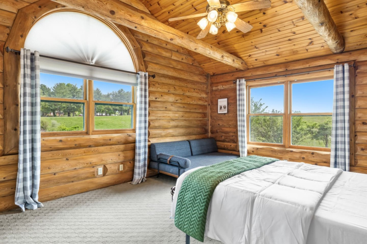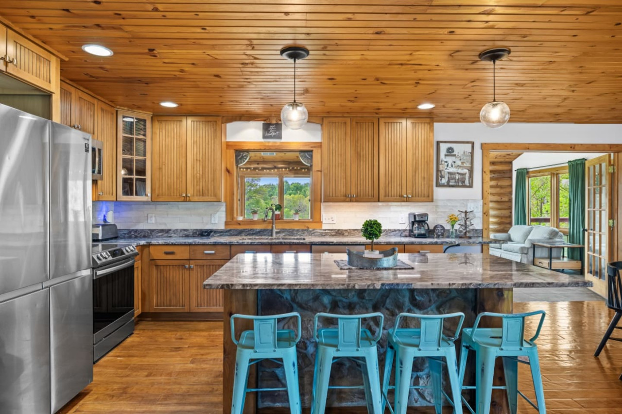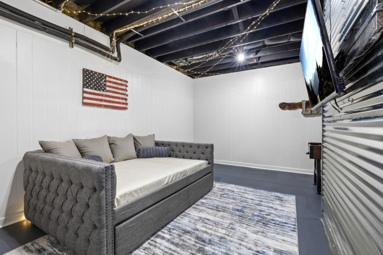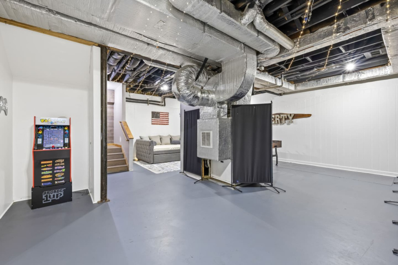 Taste the best of country life in the beautiful Shenandoah Valley. Surrounded by award-winning wineries, you are sure to find local flavor that you'll love. While adventure-seekers hike or ride Blue Ridge trails and explore caverns and bends in the river, others will enjoy relaxing in a house that truly is a destination in itself. From arcades and games to billiards and foosball to a hot tub with beautiful country views and great outdoor dining areas, Liberty Lodge has something for everyone. Three Bedrooms | Five Acres | 4,000 Square Feet Fire Pit | Hot Tub | Pool Table | Foosball | Gas Grill | Super Nintendo | Pac-Man Arcade Outdoor Dining Space | Patio Seating | Fenced-in Backyard Gig-Speed Wi-Fi | 65-Inch, 55-inch, and 50-Inch Roku TVs Master Bedroom: Queen Bed + Twin Rollaway | Bedroom 2: Queen Bed + Twin Futon | Bedroom 3: Queen Bed | Loft: Queen-Size Sleeper Sofa | Basement Game Room: Queen Day Bed + Twin Trundle Bed OUTDOOR: Hot tub, fire pit with six Adirondack chairs, 16-foot custom-built live edge black walnut table with Bluetooth speakers, patio seating, front porch with rockers and gliders, fenced-in yard INTERIOR: Pool table, foosball table, sunroom with floor-to-ceiling windows, dining room table with Room for six plus additional seating at the kitchen island, 65-inch, 55-inch, and 50-inch Roku TVs, free Gig-speed Shentel Wi-Fi, Pac-Man arcade with 14 popular games, Super Nintendo with 21 all-time classic games KITCHEN: Fully equipped with all the basics; pots + pans, dishes, glassware, silverware, refrigerator, oven, stove, dishwasher with a third rack, microwave, toaster, blender, Keurig Duo coffee maker for K-cups or drip coffee, spacious island GENERAL: Linens and towels, central air conditioning and heat, washer/dryer, iron, pack n' play, keyless entry PARKING: Driveway space for twelve vehicles Guests will have access to the entire house and grounds, with the exception of one closet that is reserved for the cleaners and one small outbuilding that is used by the landscape crew Taste the best of country life in the beautiful Shenandoah Valley. Surrounded by award-winning wineries, you are sure to find local flavor that you'll love. Adventure-seekers may hike or ride Blue Ridge trails and explore caverns and bends in the river, while others enjoy relaxing in a house that truly is a destination in itself. From arcades and games to billiards and foosball to a hot tub with beautiful country views and great outdoor dining areas, Liberty Lodge has something for everyone. Three Bedrooms | Loft | 2.5 Bathrooms | Five Acres | 4,000 Square Feet Fire Pit | Hot Tub | Pool Table | Foosball | Gas Grill | Super Nintendo | Pac-Man Arcade Outdoor Dining Space | Patio Seating | Fenced-in Backyard Gig-Speed Wi-Fi | 65-Inch, 55-inch, and 50-Inch Roku TVs Master Bedroom: Queen Bed + Twin Rollaway | Bedroom 2: Queen Bed + Twin Futon | Bedroom 3: Queen Bed | Loft: Queen-Size Sleeper Sofa | Basement Game Room: Queen Day Bed + Twin Trundle Bed OUTDOOR: Hot tub, fire pit with six Adirondack chairs, 16-foot custom-built live edge black walnut table with Bluetooth speakers, patio seating, front porch with rockers and gliders, fenced-in yard INTERIOR: Pool table, foosball table, sunroom with floor-to-ceiling windows, dining room table with Room for six plus additional seating at the kitchen island, 65-inch, 55-inch, and 50-inch Roku TVs, free Gig-speed Shentel Wi-Fi, Pac-Man arcade with 14 popular games, Super Nintendo with 21 all-time classic games KITCHEN: Fully equipped with all the basics; pots + pans, dishes, glassware, silverware, refrigerator, oven, stove, dishwasher with a third rack, microwave, toaster, blender, Keurig Duo coffee maker for K-cups or drip coffee, spacious island GENERAL: Linens and towels, central air conditioning and heat, washer/dryer, iron, pack n' play, keyless entry PARKING: Driveway space for twelve vehicles ______________________________________________________________________________ The cabin is a convenient base from which to explore the following towns: - Edinburg (three minutes) - Mount Jackson (ten minutes) - Woodstock (ten minutes) - New Market (15 minutes) - Strasburg (25 minutes) - Basye (25 minutes) - Harrisonburg (30 minutes) - Luray (35 minutes) Some of the most popular local restaurants are as follows: - Beans BBQ (four minutes) - Edinburg Mill Restaurant (four minutes) - Swover Creek Farm Brewery in Edinburg (eight minutes) - Woodstock Brewhouse in Woodstock (12 minutes) - The Woodstock Cafe in Woodstock (12 minutes) - Jalisco’s in New Market (15 minutes) - The Burn Barrel in Basye (25 minutes) - The Chop House in Harrisonburg (30 minutes) Some excellent local wineries: - Shenandoah Vineyard near Edinburg (five minutes) - Wolf Gap Vineyard and Winery near Edinburg (five minutes) - The Winery at Kindred Pointe near Conicville (ten minutes) - Cave Ridge Vineyard near Mount Jackson (ten minutes) - Muse Vineyard in Woodstock (12 minutes) - Third Hill Winery near Quicksburg (15 minutes) - North Mountain Vineyard and Winery near Maurertown (20 minutes) - Star in the Valley Estate Winery near Star Tannery (25 minutes) Breweries, cideries, and distilleries near the cabin: - Swover Creek Farm and Brewery near Edinburg (eight minutes) - Life is Hard Cider near Mount Jackson (nine minutes) - Woodstock Brewhouse in Woodstock (12 minutes) - Ridge Runner Taphouse near Woodstock (15 minutes) - Filibuster Distillery in Maurertown (18 minutes) - Box Office Brewery in Strasburg (25 minutes) - Brothers Craft Brewing in Harrisonburg (30 minutes) Things to do around the area include: - Slip a kayak, canoe, or innertube in the water at the Chapmans Landing public boat launch in Edinburg (eight minutes) - Hikes in the George Washington National Forest (closest hiking is about ten minutes away) - ATV Riding at Edinburg Gap (ten minutes) - Hike the trails at Seven Bends State Park or angle for smallmouth and largemouth bass (12 minutes) - Hiking at Wolf Gap Recreation Area (