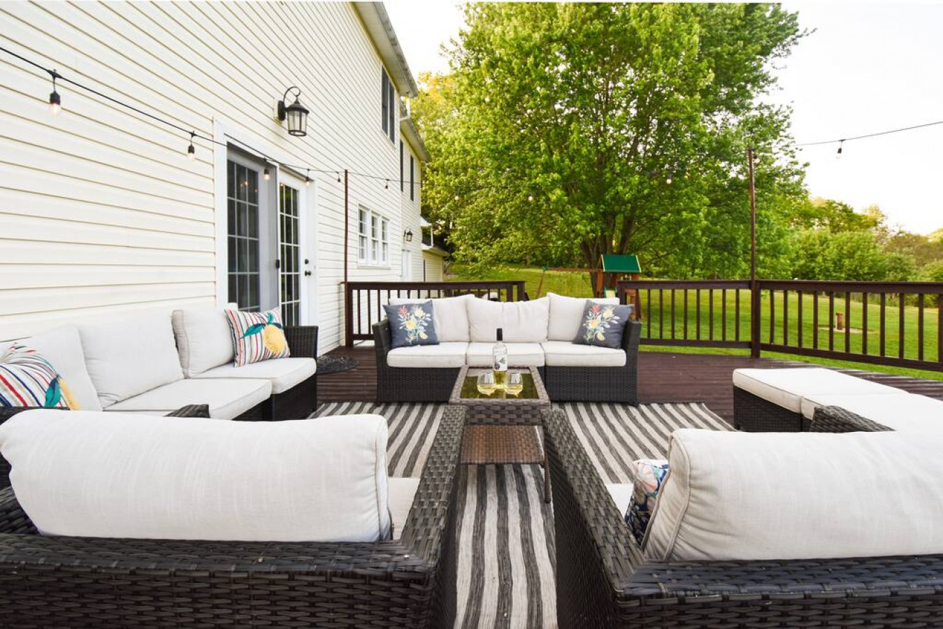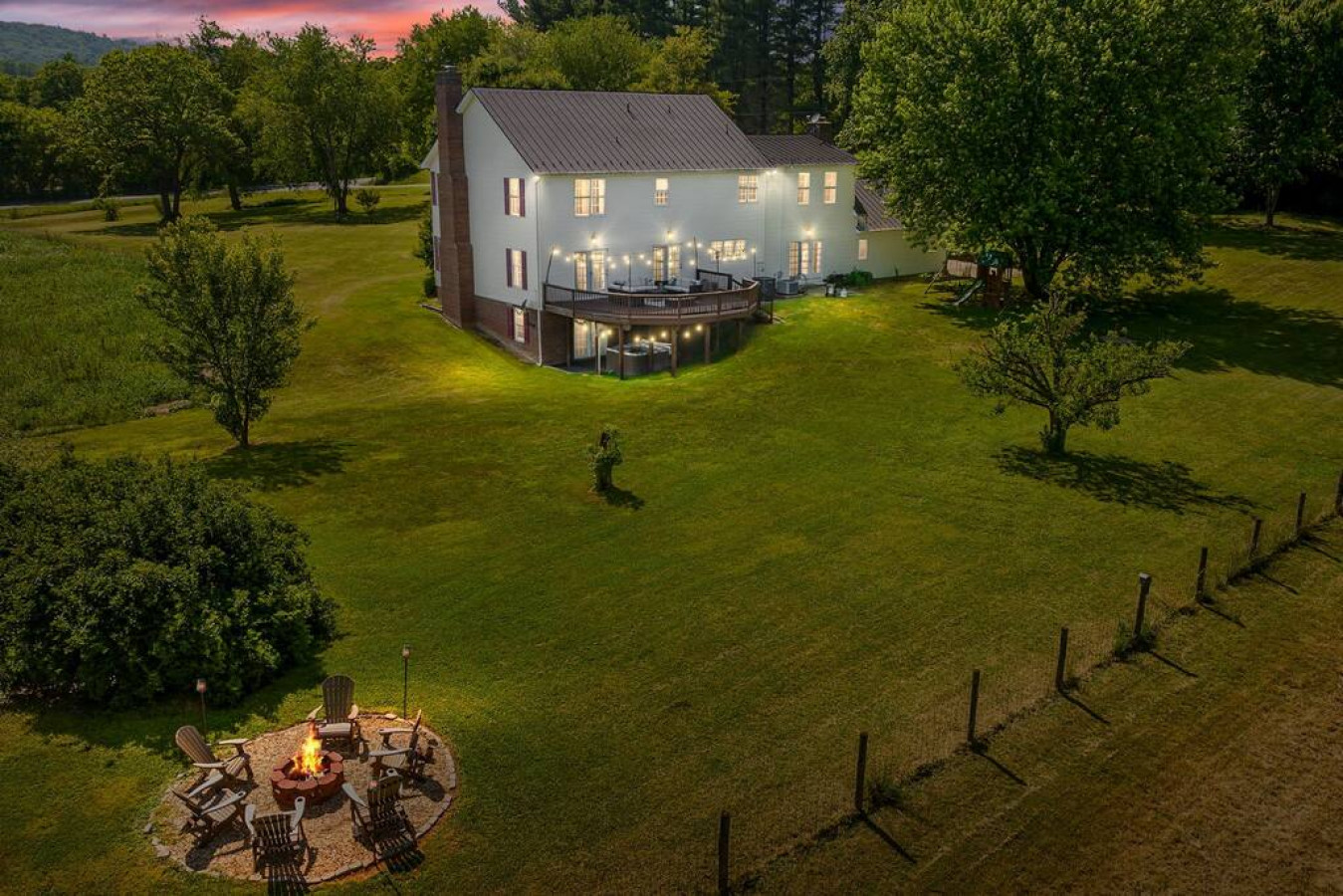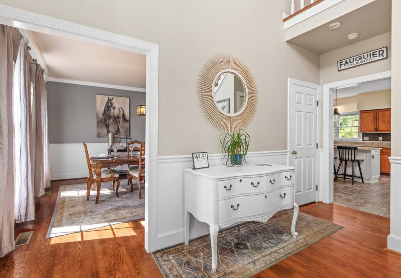 Fox Chase is nestled on five rolling acres in the heart of Virginia’s wine country. A private footpath connects the house to nearby Blue Valley Winery. The house is perfect for large parties and is an ideal base from which to explore the vineyards, horse farms, history, hiking, and popular cycling routes of the Piedmont. Just four miles from Marshall, eight miles from Paris and Upperville, and 13 miles from Middleburg, the house is also close to some of the region’s finest shopping and dining. Five Bedrooms | Five Acres | 5,000 Square Feet Fire Pit | Hot Tub | Home Gym | Game Room Propane Grill | Swing Set | Lawn Games | Fenced-in Backyard Free Wi-Fi | Free Parking | Private Footpath to Blue Valley Winery Ten Wineries Within a Five Mile Radius Master Bedroom: Queen Bed | Bedroom 2: Queen Bed | Bedroom 3: Two Queen Beds | Bedroom 4: Two Twin/Twin Bunks | Bedroom 5: Twin/Queen Bunk + Twin Bed | Living Room: Queen Sleeper Sofa + Two Queen Air Mattresses OUTDOOR: Spacious deck with propane grill and string lighting, patio seating, eight-person hot tub, fire pit with custom-built Adirondack chairs, swing set, two-acre fenced in pasture, apple orchard, raspberry patch, s’mores skewers, yard games, private footbath to Blue Valley Winery INTERIOR: Three sitting areas with multiple sectionals and sofas, 65-inch and 55-inch smart TVs, two wood-burning fireplaces, DISH Network, office/study with collection of books, game room with air hockey and hoops games, retro arcade with classic games including Pac-Man and Galaga, home gym with Nordictrac treadmill, recumbent exercise bike, power tower, flat bench, adjustable incline/decline bench, and free-weights KITCHEN: Fully equipped with all the basics; refrigerator, oven, 36-inch induction cooktop, dishwasher, microwave, toaster, Ninja coffee and tea maker, drip coffee machine, coffee grinder, hot water kettle GENERAL: Linens and towels, central air conditioning and heat, washer/dryer, iron, pack n’ play, keyless entry PARKING: Driveway space for up to eight vehicles, additional parking available for extra vehicles --------------------------------------------------------------------------------------------- At Fox Chase house, you can enjoy modern amenities in a historical setting. Built on land that was once part of Chief Justice John Marshall's Estate of Oak Hill, today, the house sits in the heart of Middleburg Wine Country. When you are ready to do some sightseeing, you will find that the house is conveniently located to the following towns: - Marshall: Five minutes - The Plains: Ten minutes - Upperville: 12 minutes - Paris: 12 minutes - Middleburg: 13 minutes Fine dining abounds. Some of the best local choices include: 1. Field and Main in Marshall (five minutes) 2. The Rail Stop in The Plains (ten minutes) 3. The Ashby Inn in Paris (12 minutes) 4. The Hunter's Head in Upperville (12 minutes) 5. The Red Fox Inn in Middleburg (13 minutes) Some of the most popular nearby wineries include: 1. The Blue Valley Winery (a five-ten minute walk or about one to two minutes by car) 2. The Barrel Oak Winery and Taphouse (about two minutes) 3. Three Fox Vinyards (about five minutes) 4. RdV Vinyards (about seven minutes) 5. Delaplane Cellars (about seven minutes) Point to Point Limousines offer wine tasting tours in the area. Their "Fauquier Cluster" hits several of the wineries on this list. Breweries include: 1. The Barrel Oak Taphouse (two minutes away) 2. Lost Barrel Brewery in Middleburg (15 minutes away) 2. Altered Suds in Warrenton (20 minutes away) 3. The Front Royal Brewing Company (25 minutes away) 5. Bear Chase Brewing Company in Bluemont (28 minutes away) For something different, head to Cobbler Mountain Cellars (eight minutes) and taste their delicious ciders! A quick 12-minute drive takes you to Great Meadow in Old Tavern, where you can watch the Virginia Gold Cup or take in the ever-popular twilight polo. Hikers will enjoy the Sky Meadows Park (ten minutes away) with stunning vistas of the verdant Paris Valley. If you prefer to do your sightseeing from the comfort of your car, Skyline Drive traverses the summits of the Blue Ridge in Shenandoah National Park, with spectacular views across the Piedmont area and into the Shenandoah Valley. A half-hour drive takes you to the Shenandoah River, which is great for canoeing, kayaking, or relaxing. Spelunkers - don't miss the stunning, cathedral-like Luray Caverns. Also visit Skyline Caverns in Front Royal. Kids will love the mirror maze! Your four-legged friends don't have to miss out on the fun. The house has a two-acre fenced in pasture with lots of stuff to sniff and explore while you are out sight-seeing. You will have access to the entire house and grounds. The house has keyless, contact-free entry. There is no need to stop and pick up a key. I will be available at all times while guests are in the house, although I try to keep regular business hours as much as possible for the sake of my family. If something needs attention, I will do my best to get it fixed as quickly as possible! Delaplane is a quiet community mostly made up of primary residences, although there are several vacation rentals in the area. When you stay at Fox Chase, you will likely see both other wine country visitors as well as residents who call the area home. I'd ask all guest to please be respectful of both! The house is on a regular, monthly pest control schedule, but sometimes unwanted bugs may venture inside. Delaplane is home to caterpillars, stink bugs, and Asian beetles which view open windows and doors as an invitation, especially at the changing of the season. I recommend keeping windows and doors closed when not in use. The house is in an area where broadband internet is not yet available. The house does have decent Wi-Fi through the AT&T network, but it is not up to speeds that one might be able to find in the city. When many devices are connected, you may experience slow internet. It should be fine for most wo